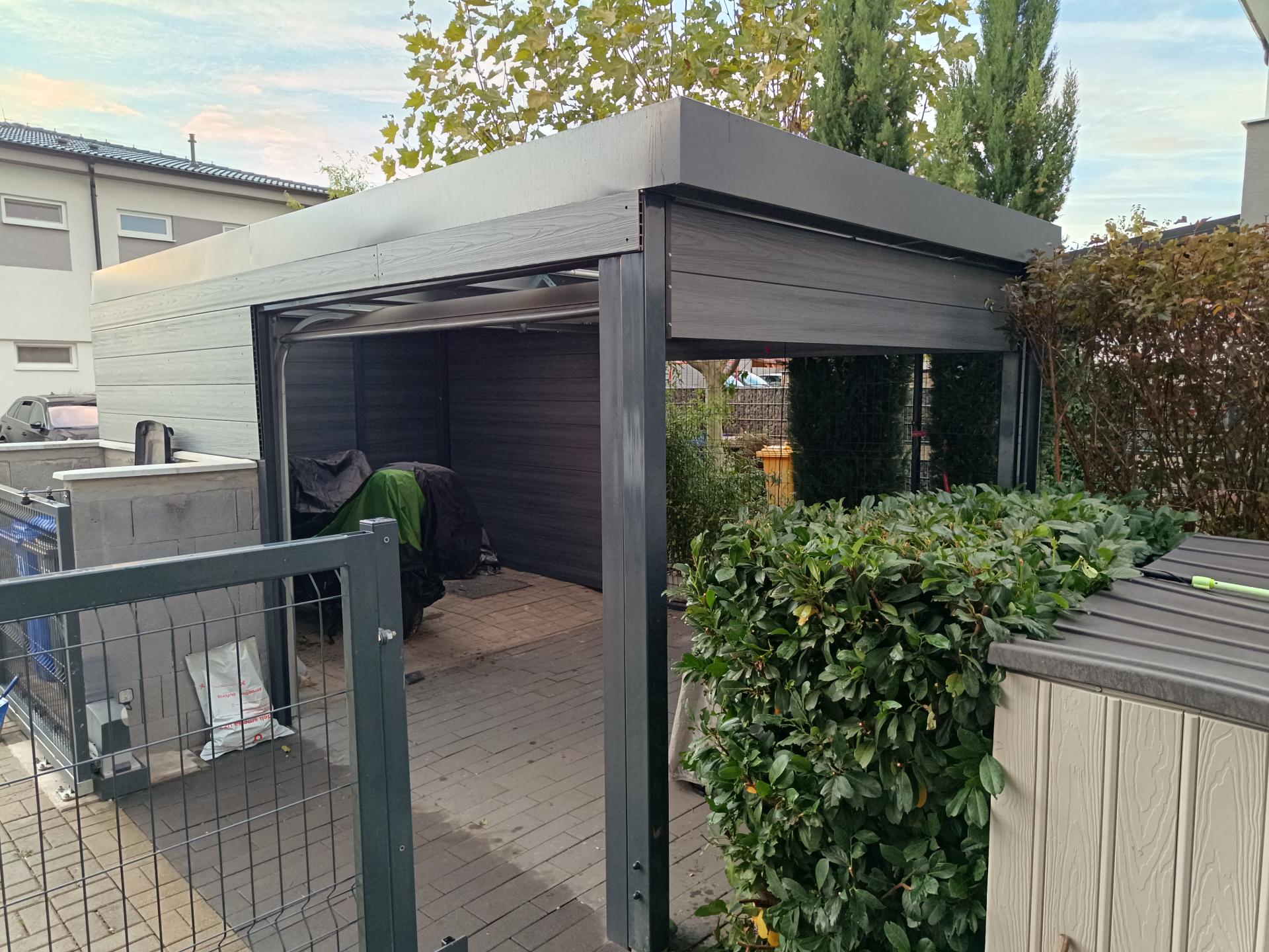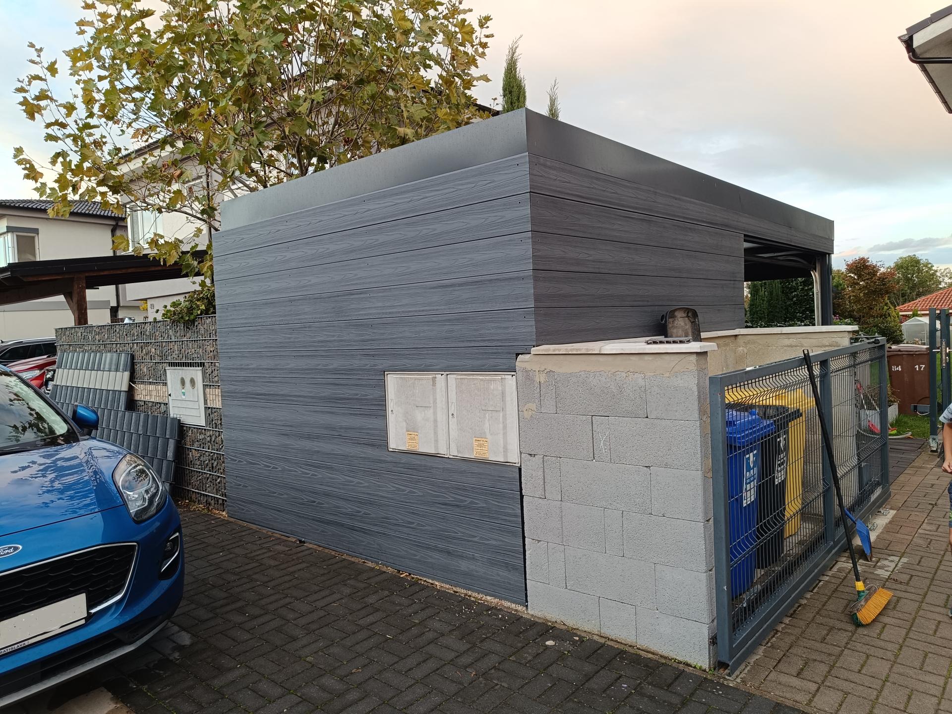 - Obklad prístrešku plotovými doskami