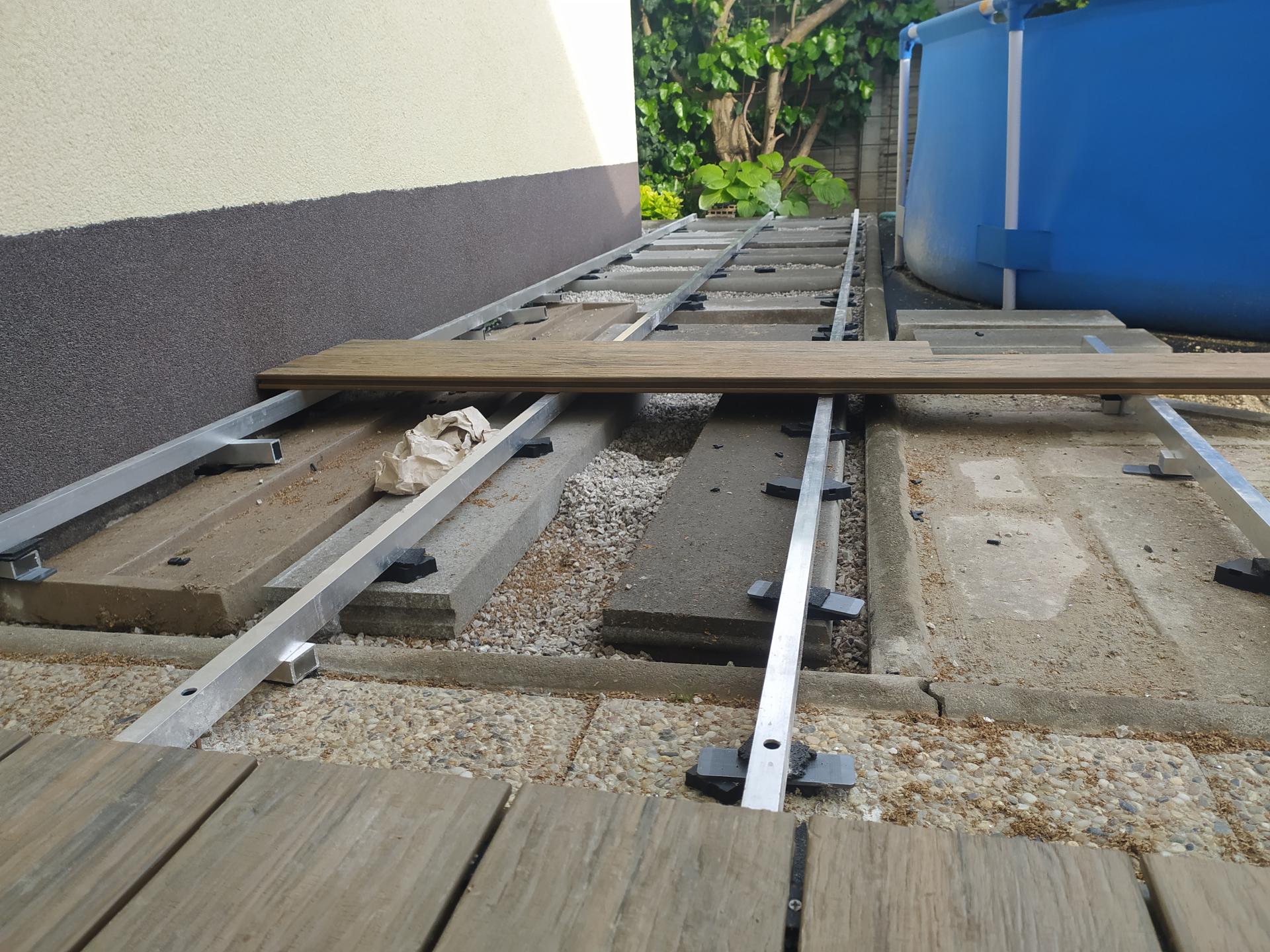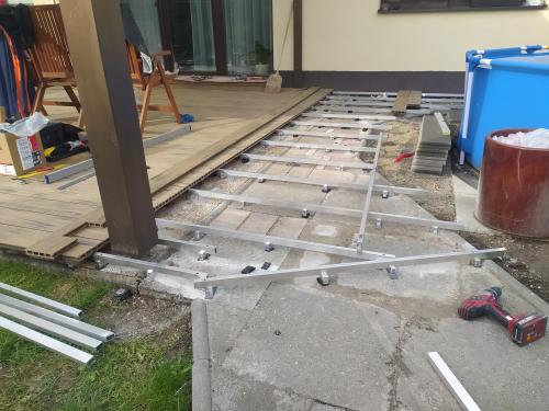 - Hliníkový podkladový rošt na makadámovom a s časti betónovom podklade