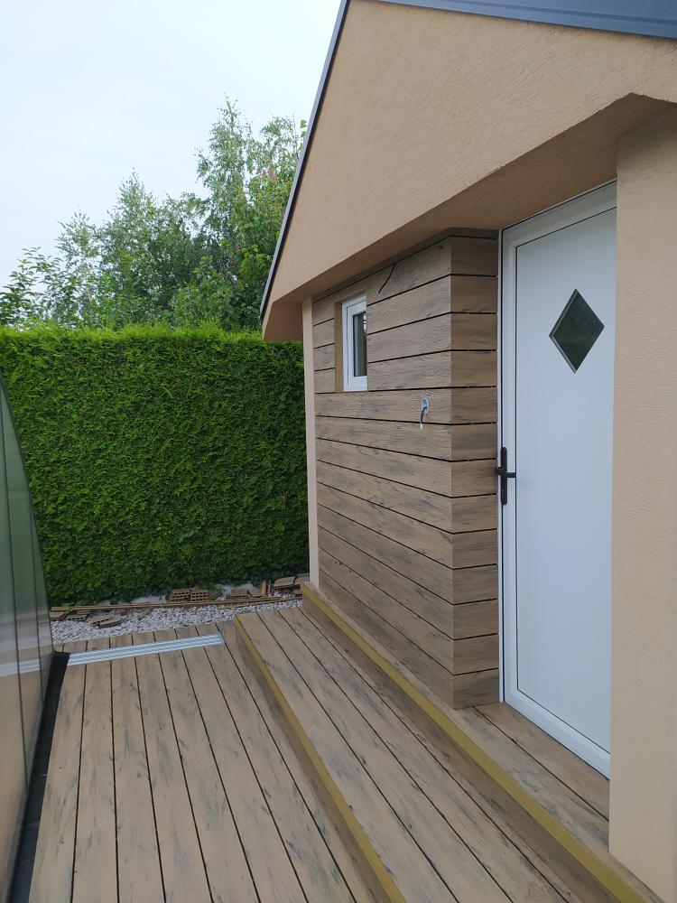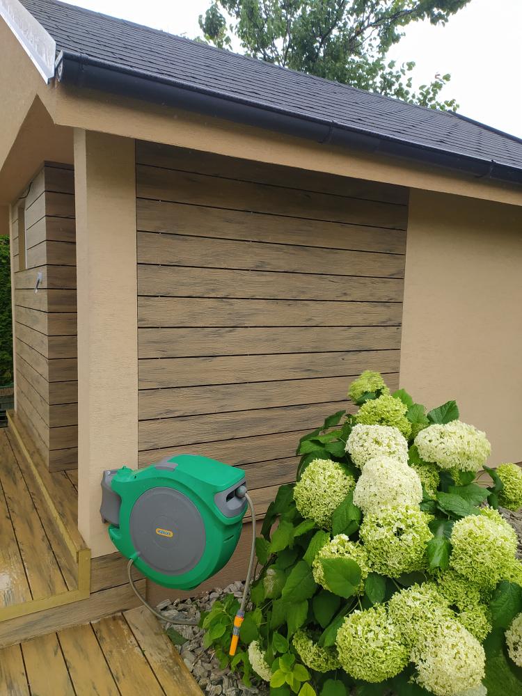 - Obklad záhradného domčeka a schodov