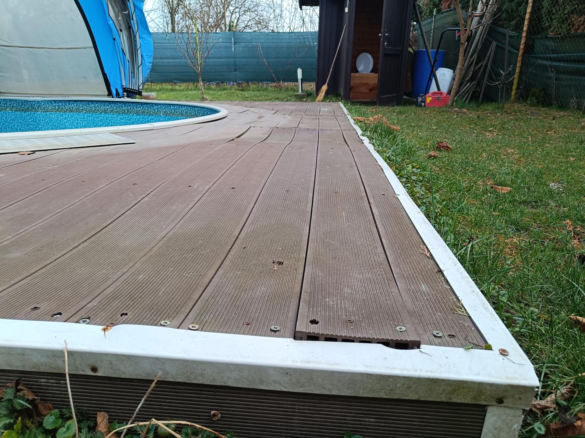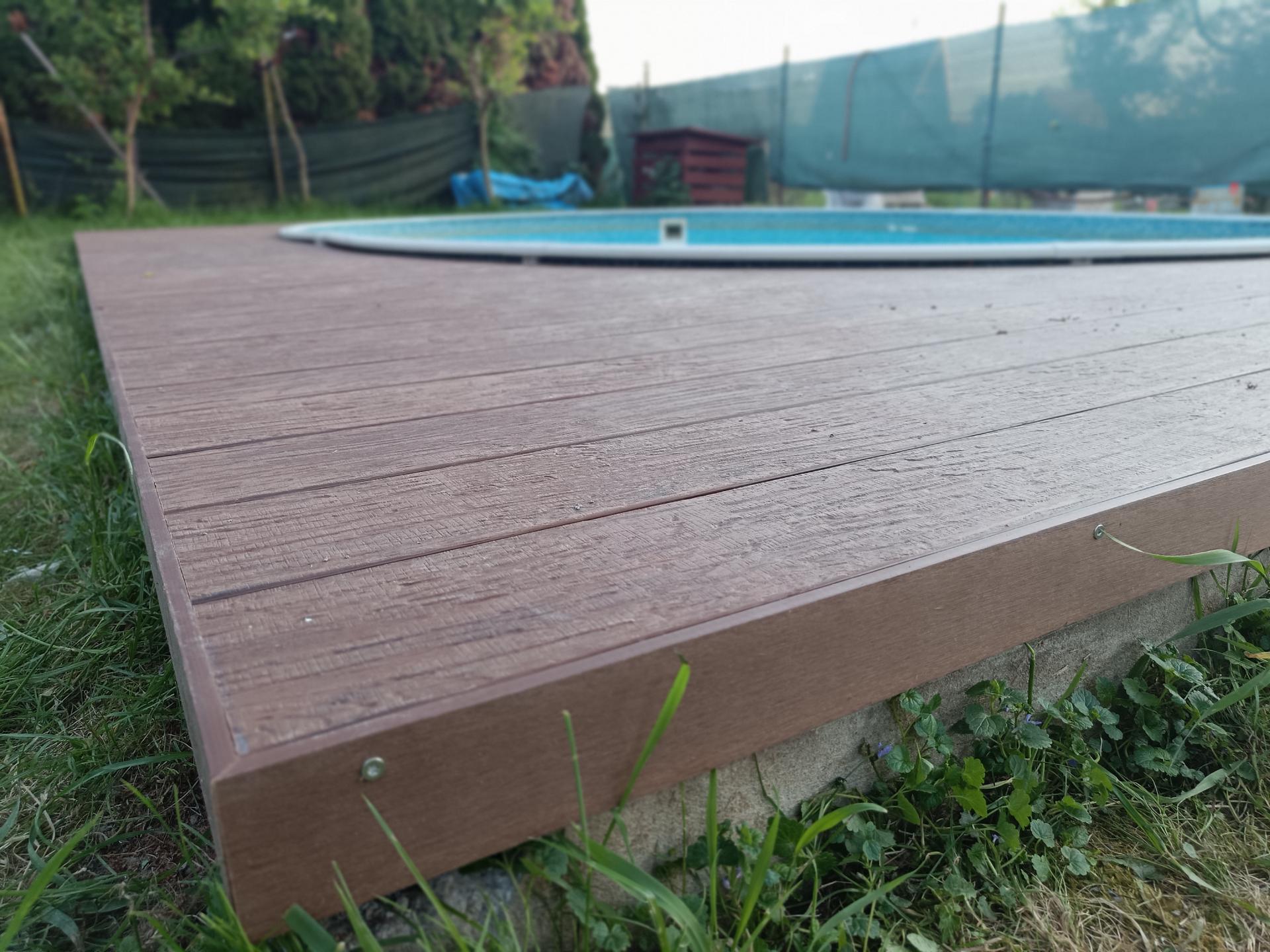 Pre klienta v Nitrianskom kraji sme realizovali WPC terasu okolo bazéna s kompozitnými doskami značky OldWood od WPC Slovakia.