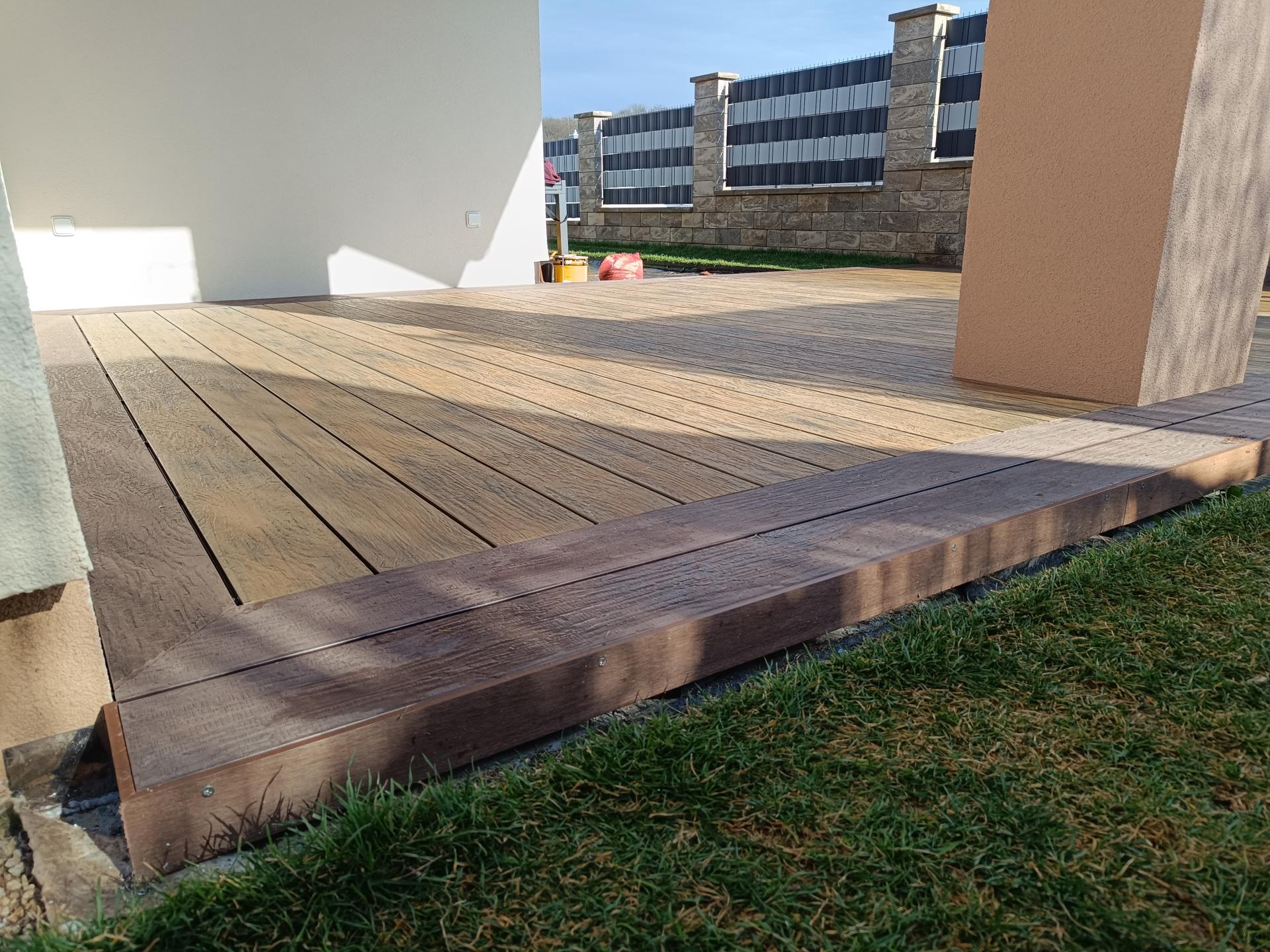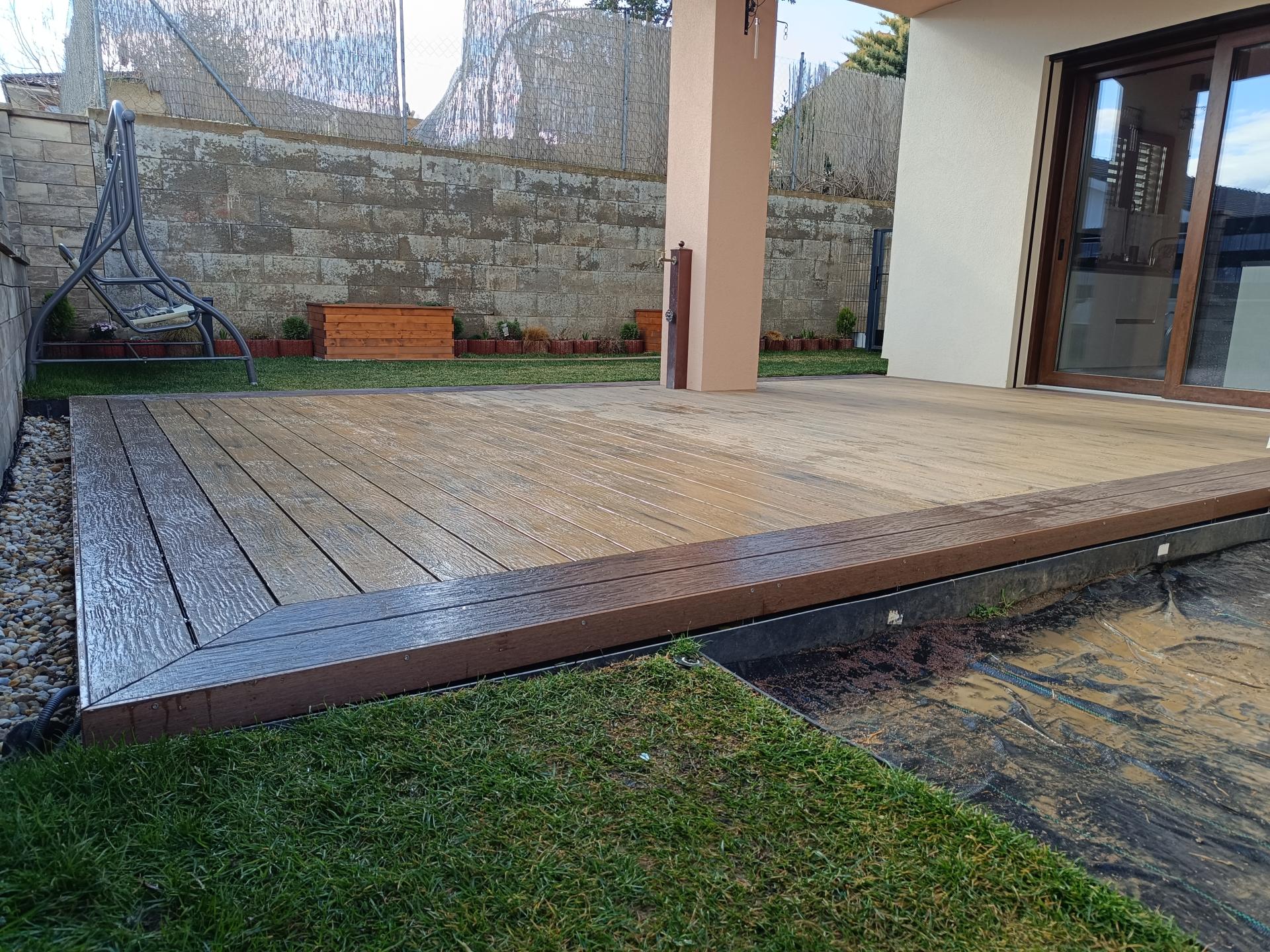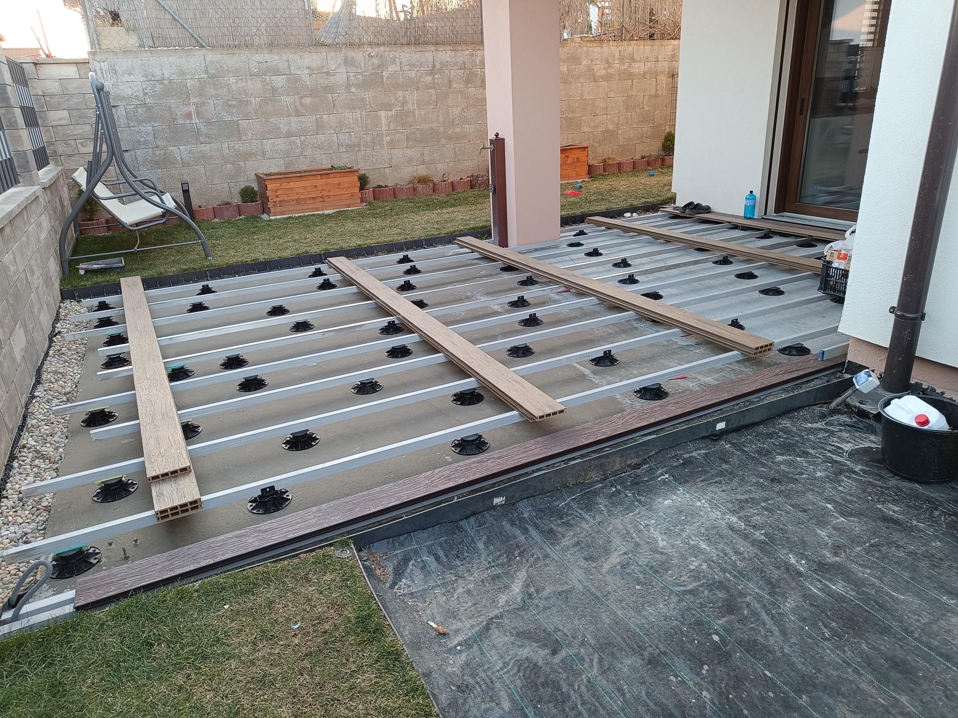 Pre klienta v Nitrianskom kraji sme realizovali WPC terasu s kompozitnými doskami značky OldWood od WPC Slovakia na hliníkovom rošte uloženom na rektifikačných terčoch.