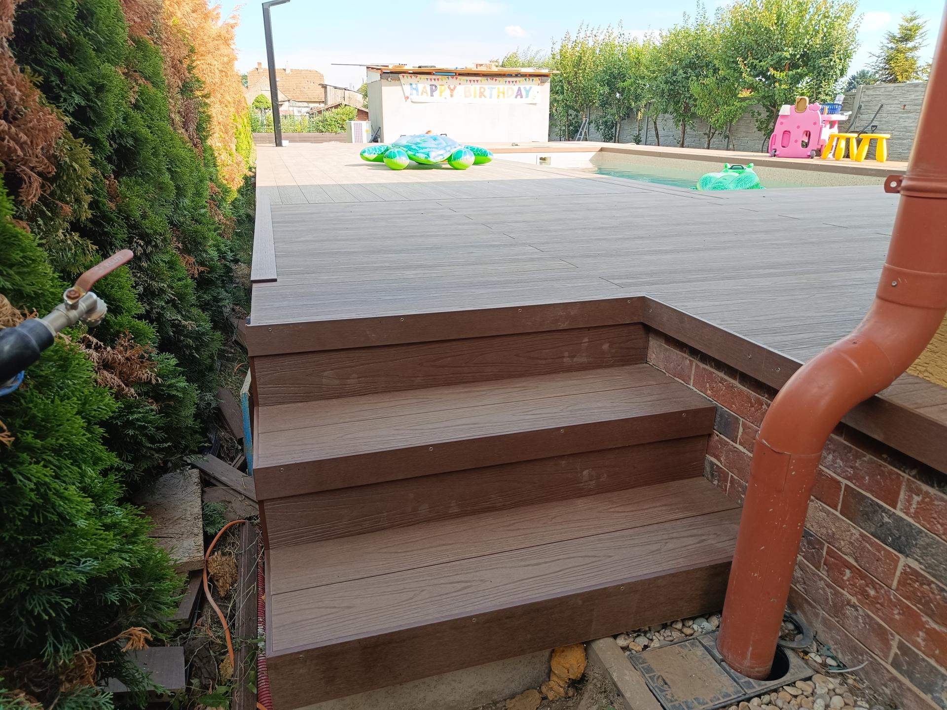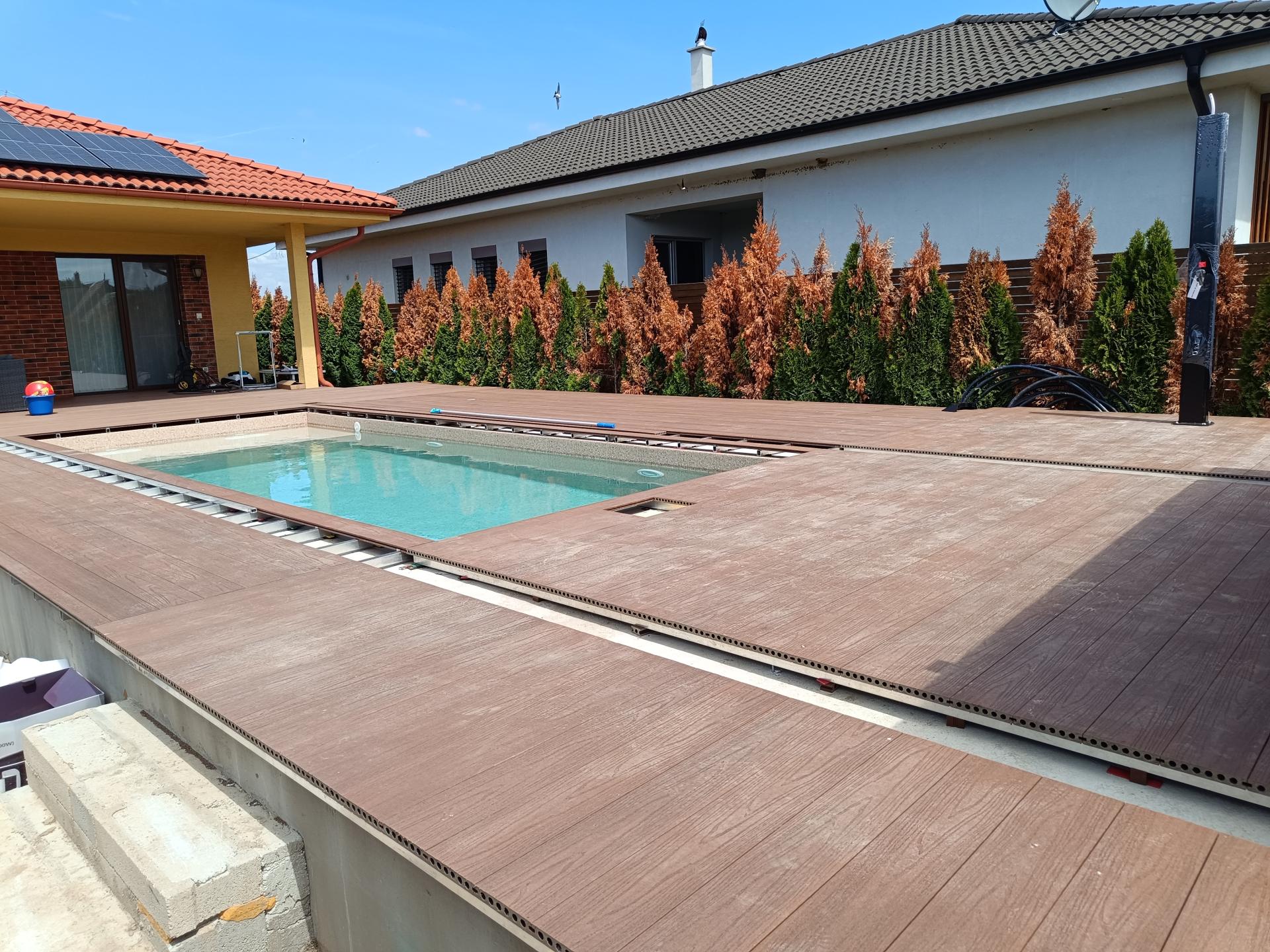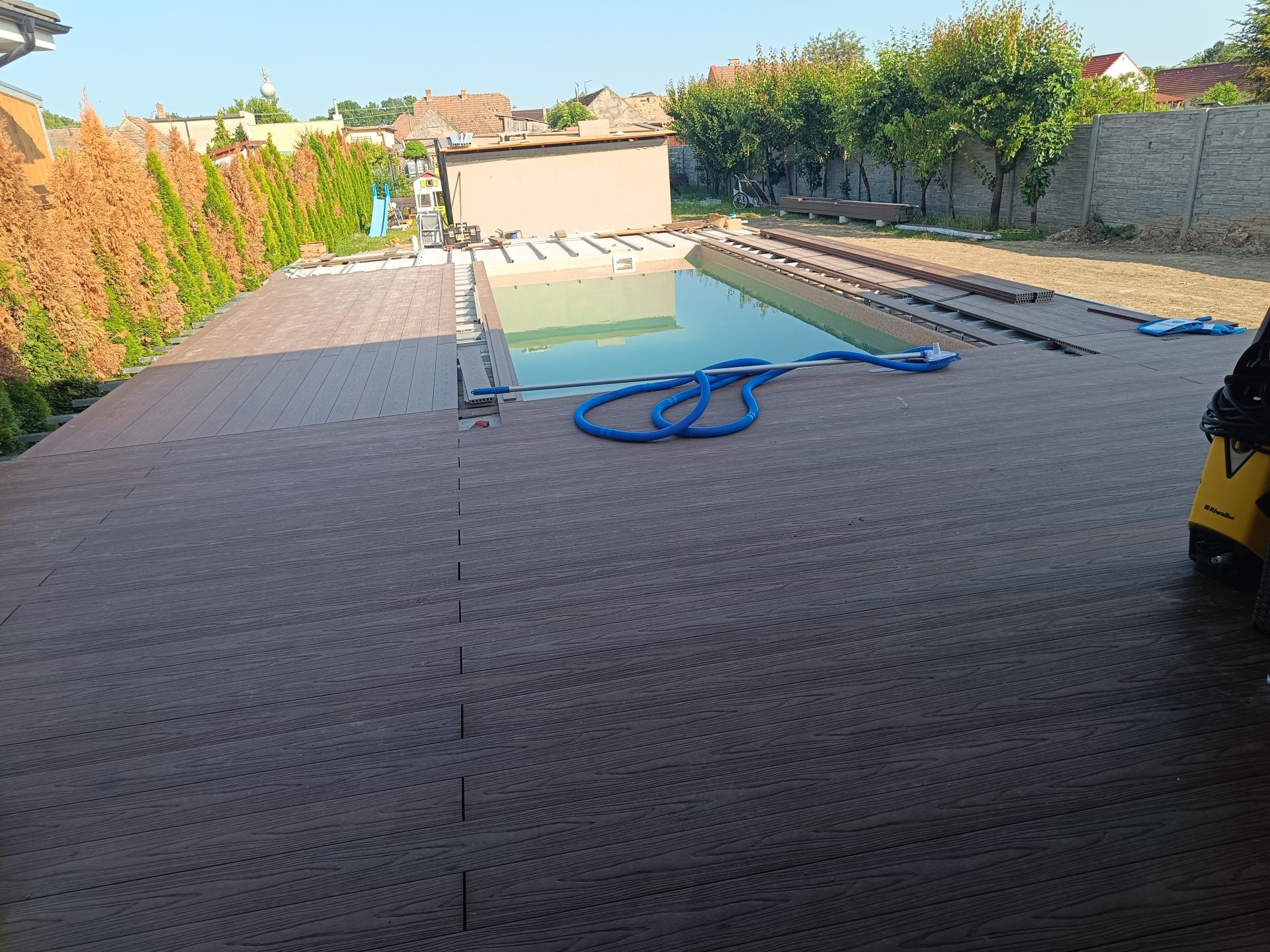 Pre klienta v Trnavskom kraji sme realizovali WPC terasu okolo bazéna s kompozitnými doskami značky Profi od WPC Slovakia.